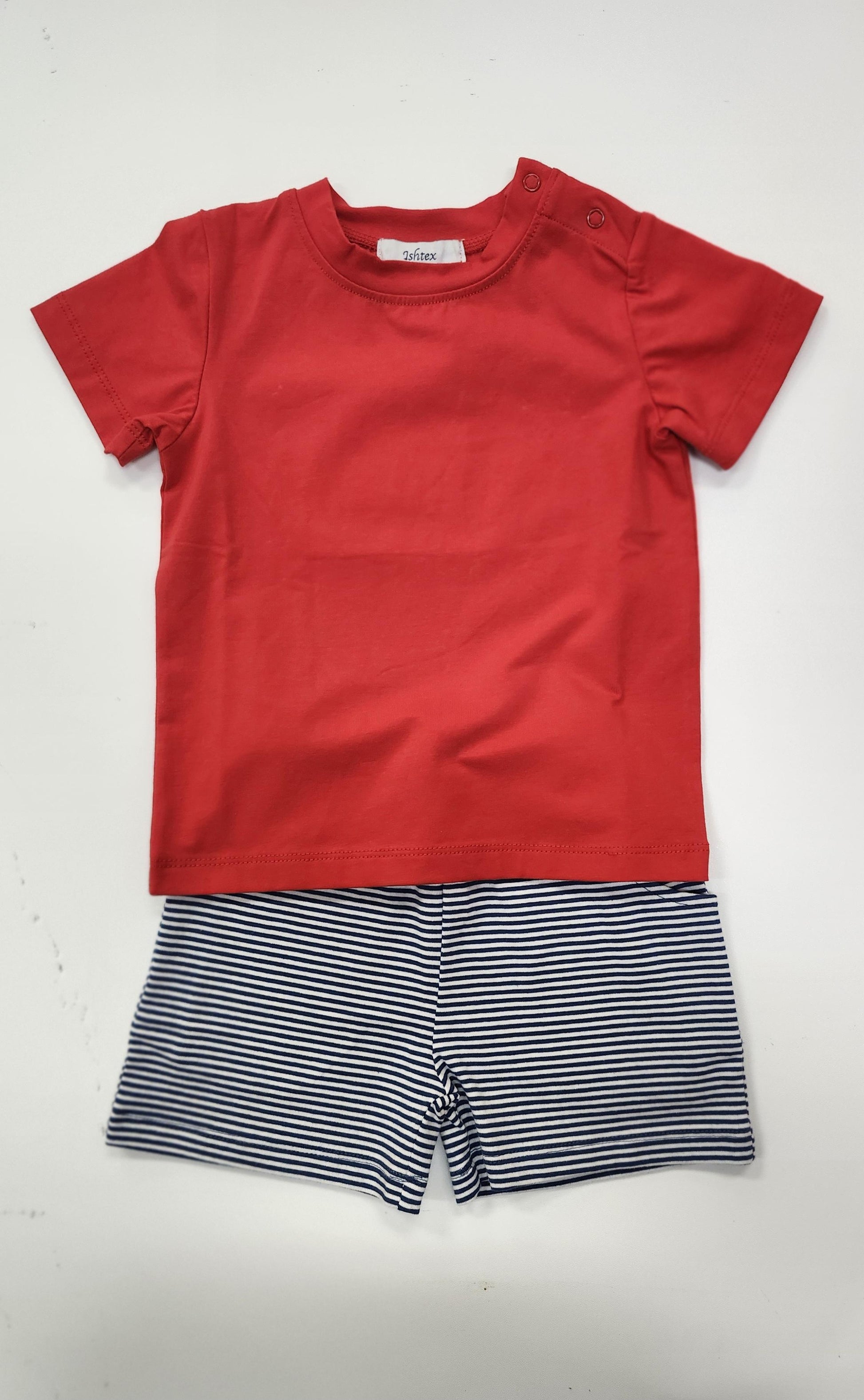 Red Top Navy/White Stripe Boy Set